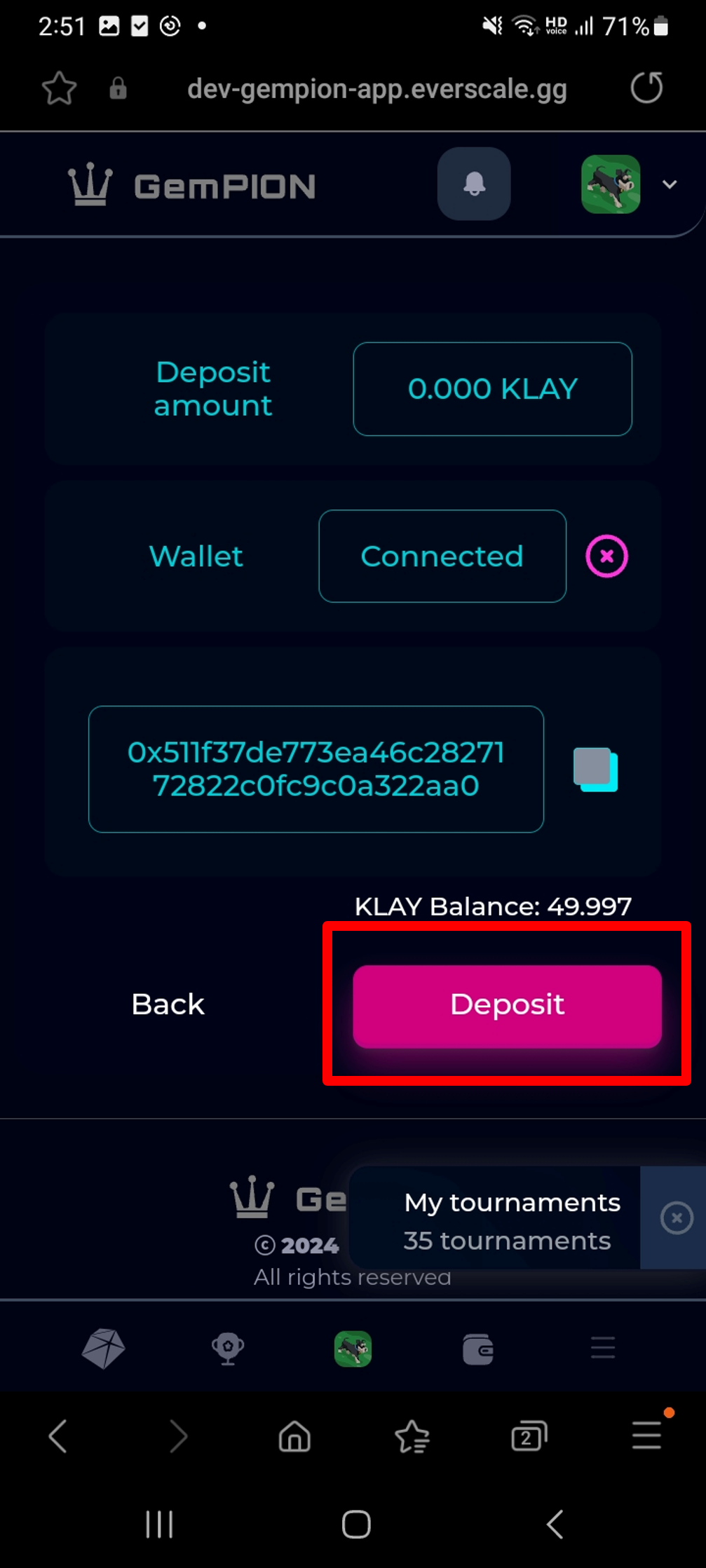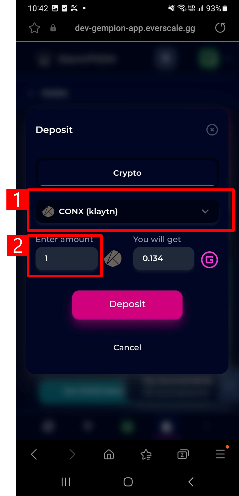 2. Put the amount to deposit