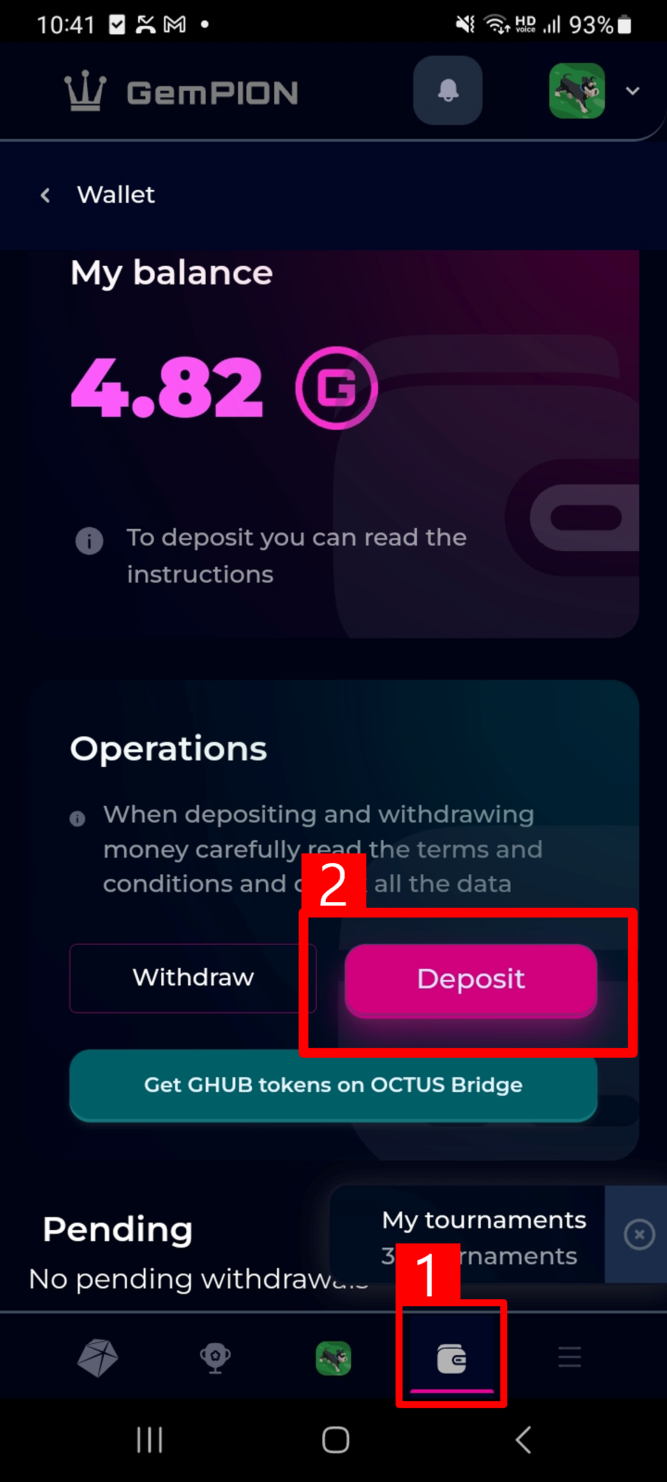 1. Touch Wallet icon.