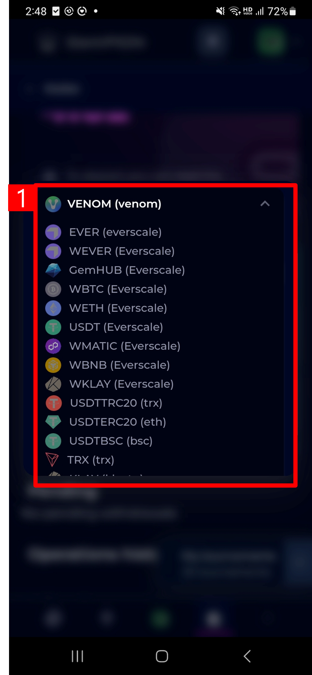 1. Choose the token to Deposit. There are many options to connect